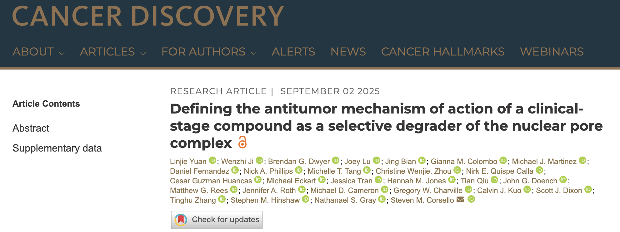 2. (Cancer Discovery, IF: 29.7) 定义临床阶段化合物作为核孔复合体选择性降解剂的抗肿瘤作用机制