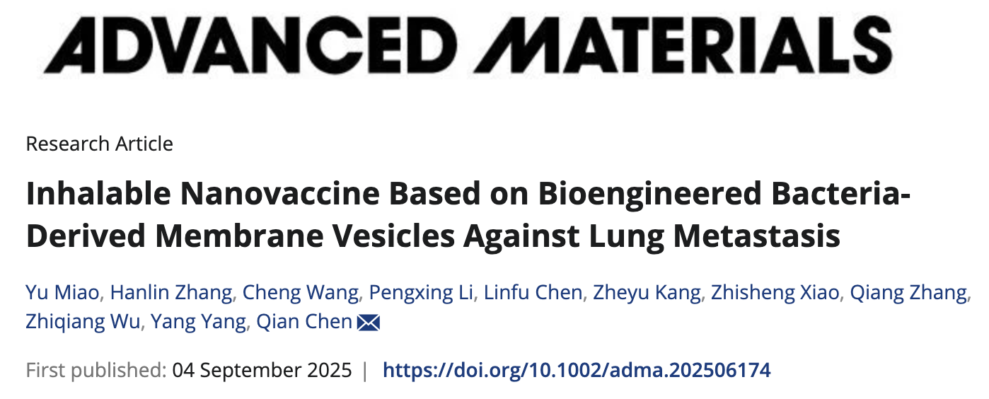 3 (ADV MATER) 基于生物工程细菌衍生膜囊泡的吸入式纳米疫苗对抗肺转移