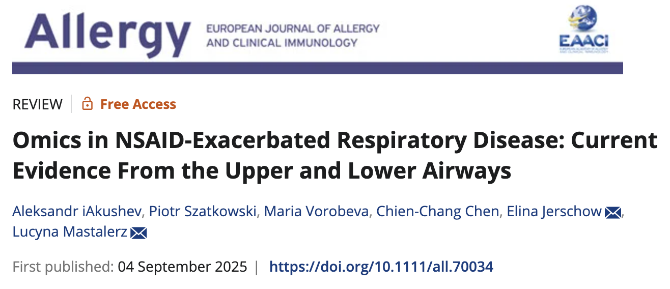 2025年9月4日,Allergy发表了一篇由梅奥诊所过敏性疾病科等机构合作的综述。该综述系统总结了非甾体抗炎药(NSAID)加重的呼吸道疾病(N-ERD)的组学研究,包括转录组学、蛋白质组学、代谢组学和表观基因组学。