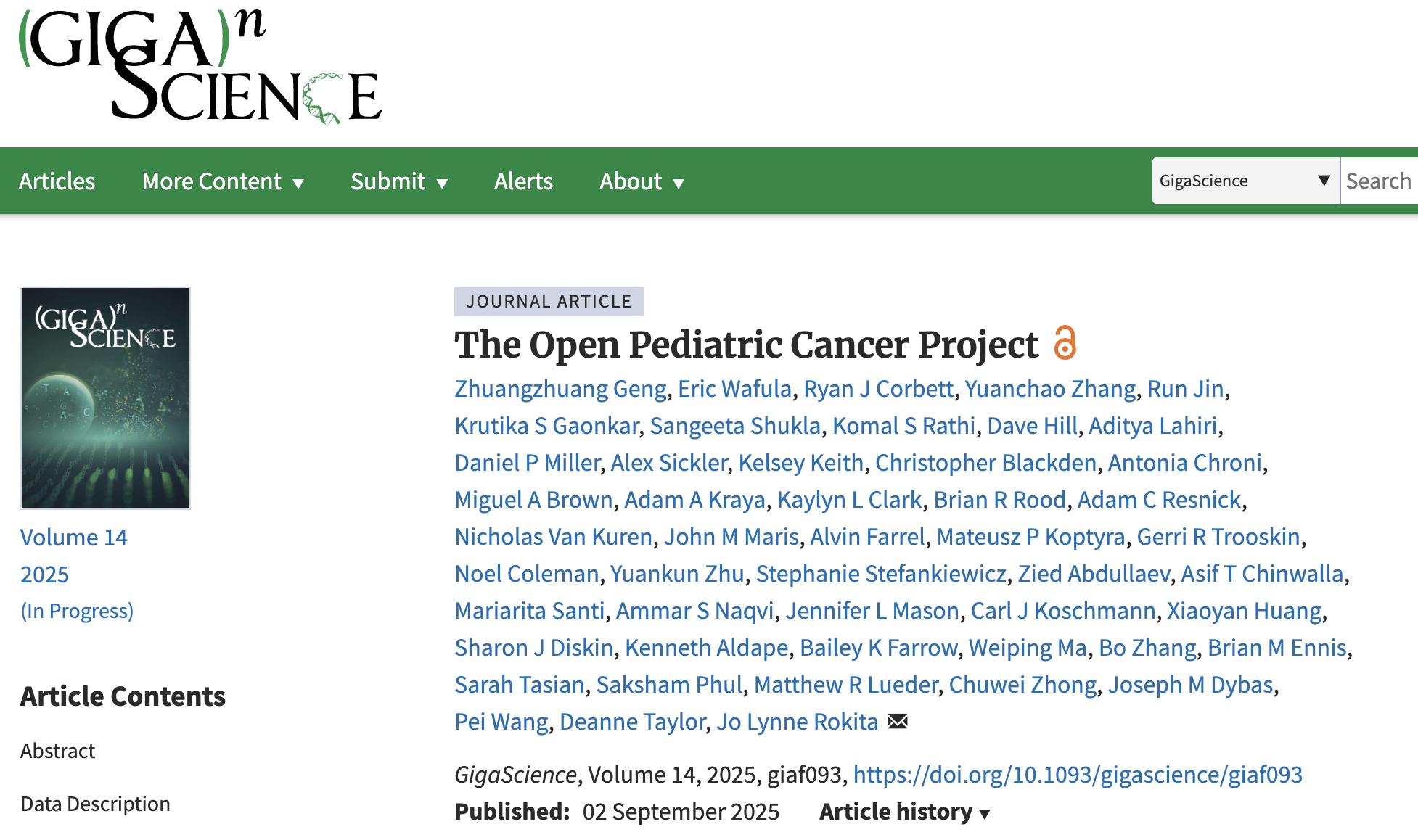 2025年1月6日,GigaScience发表了一项由费城儿童医院等机构合作完成的研究。该研究介绍了开放儿科癌症(OpenPedCan)项目,这是一个包含6112名儿科癌症患者的协调开源多组学数据集。