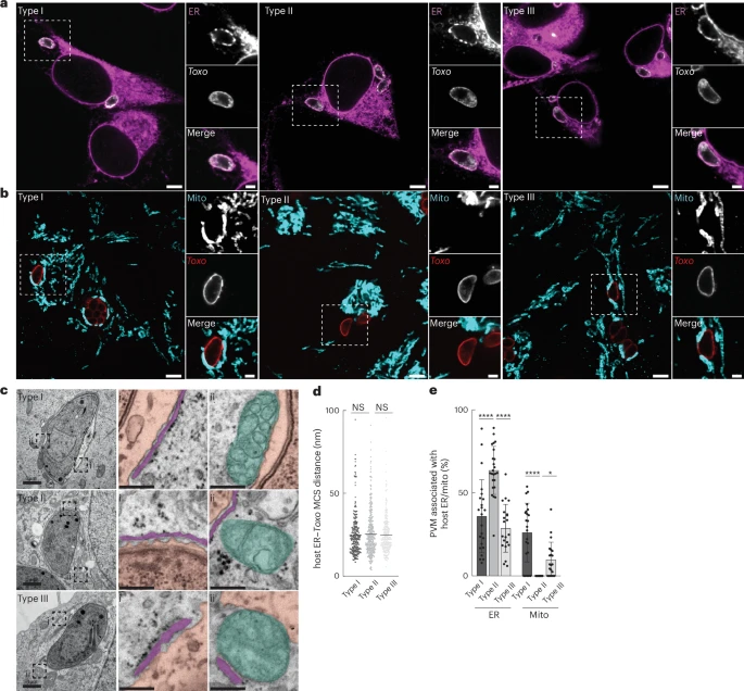 所有典型弓形虫株系均可与宿主内质网形成膜接触位点。
