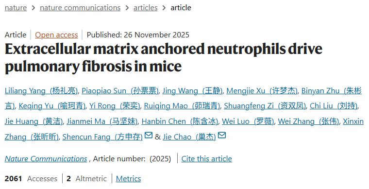 5. (NAT COMMUN,IF:14.7) 锚定在细胞外基质中的中性粒细胞驱动小鼠肺纤维化