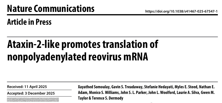 2025年12月17日,匹兹堡大学医学院联合UPMC儿童医院感染炎症与免疫研究所、卡内基梅隆大学团队(Terence S Dermody等)在Nature Communications解释呼肠孤病毒的一个“翻译优势”:其mRNA不经过多聚腺苷酸化(无poly(A)尾),却仍能高效合成病毒蛋白。研究从病毒工厂(VFs)切入——这是病毒复制、蛋白合成与装配的核心场所,muNS蛋白负责在其中起“核化”作用。