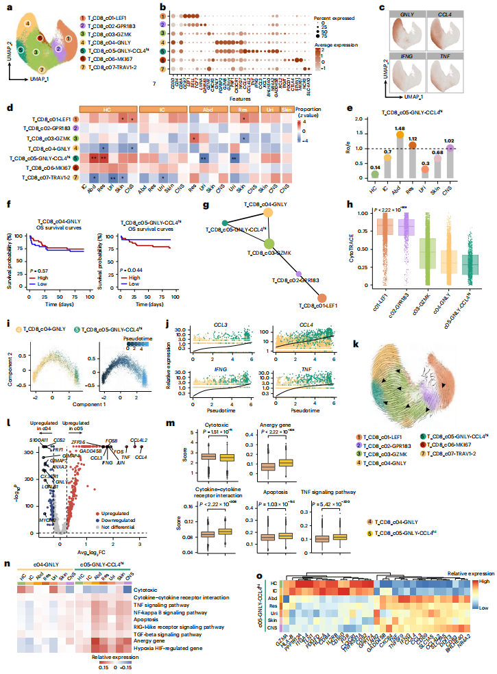 Fig.4 GNLY-CCL4ʰⁱ促炎性CD8⁺T细胞亚群在腹部和呼吸道感染诱导的脓毒症中的扩张