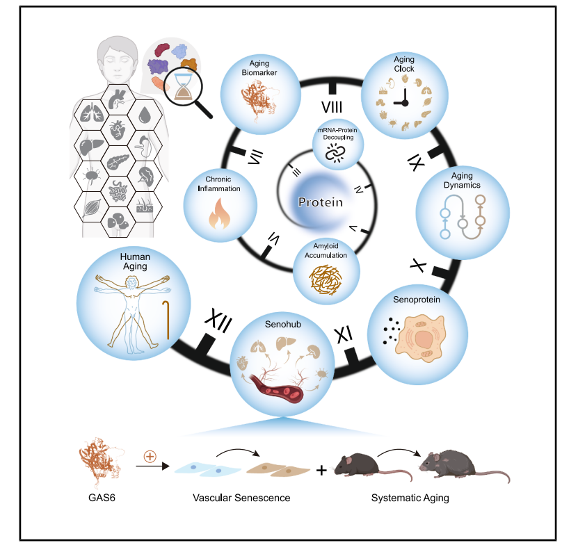 该研究首次构建了跨50年生命周期的人类多组织蛋白质组图谱,揭示了衰老过程中蛋白质稳态失衡、器官间通讯增强、血管系统作为衰老“信号枢纽”等关键机制。提出的“蛋白质年龄时钟”与“血浆代理时钟”为衰老评估提供了新工具,鉴定的GAS6、GPNMB等衰老蛋白为干预衰老及相关疾病提供了潜在靶点。