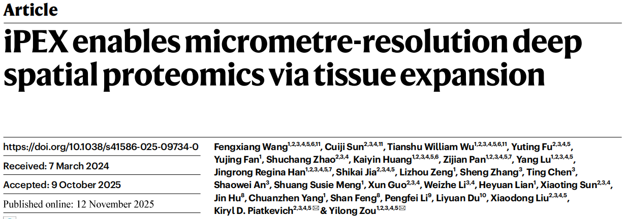 1. (Nature,IF:50.5) iPEX技术通过组织扩展实现微米分辨率的深度空间蛋白质组学