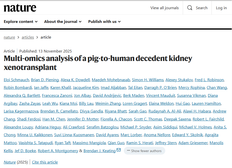 2. (Nature,IF:50.5) 猪到人尸体肾异种移植的多组学分析