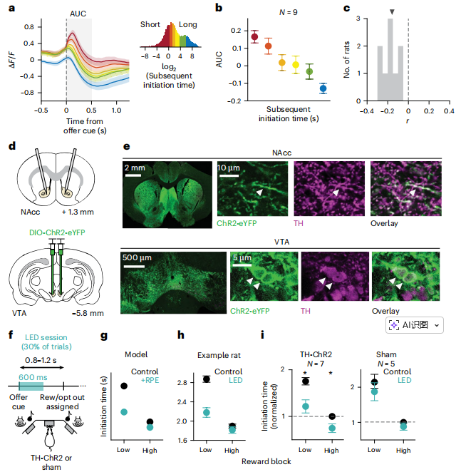 Fig. 4 | Phasic dopamine release in the NAcc controls trial initiation time,