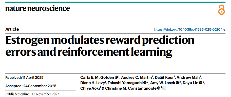 雌激素如何影响大脑学习?纽约大学神经科学中心Christine M Constantinople团队揭示“奖励预测误差”新机制。