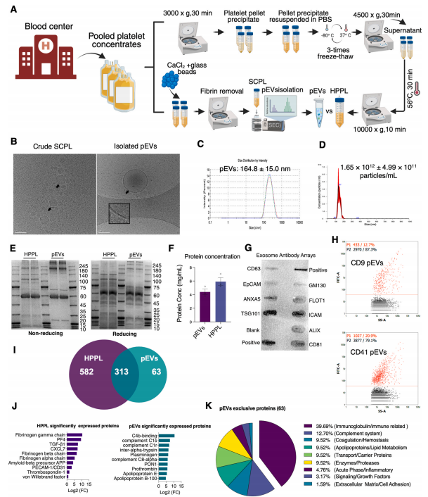 Fig. 1. Comprehensive characterization of platelet-derived extracellular vesicles (pEV) and HPPL isolated from clinical-grade platelet concentrates.