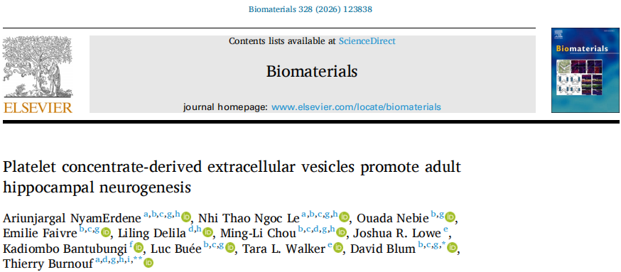 8. (Biomaterials,IF:12.8) 血小板浓缩物衍生的细胞外囊泡促进成年海马神经发生