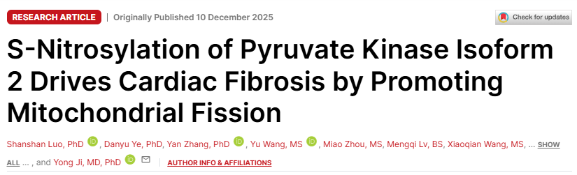 3. (CIRCULATION, IF:35.5) PKM2 的 S-亚硝基化通过促进线粒体裂变驱动心脏纤维化