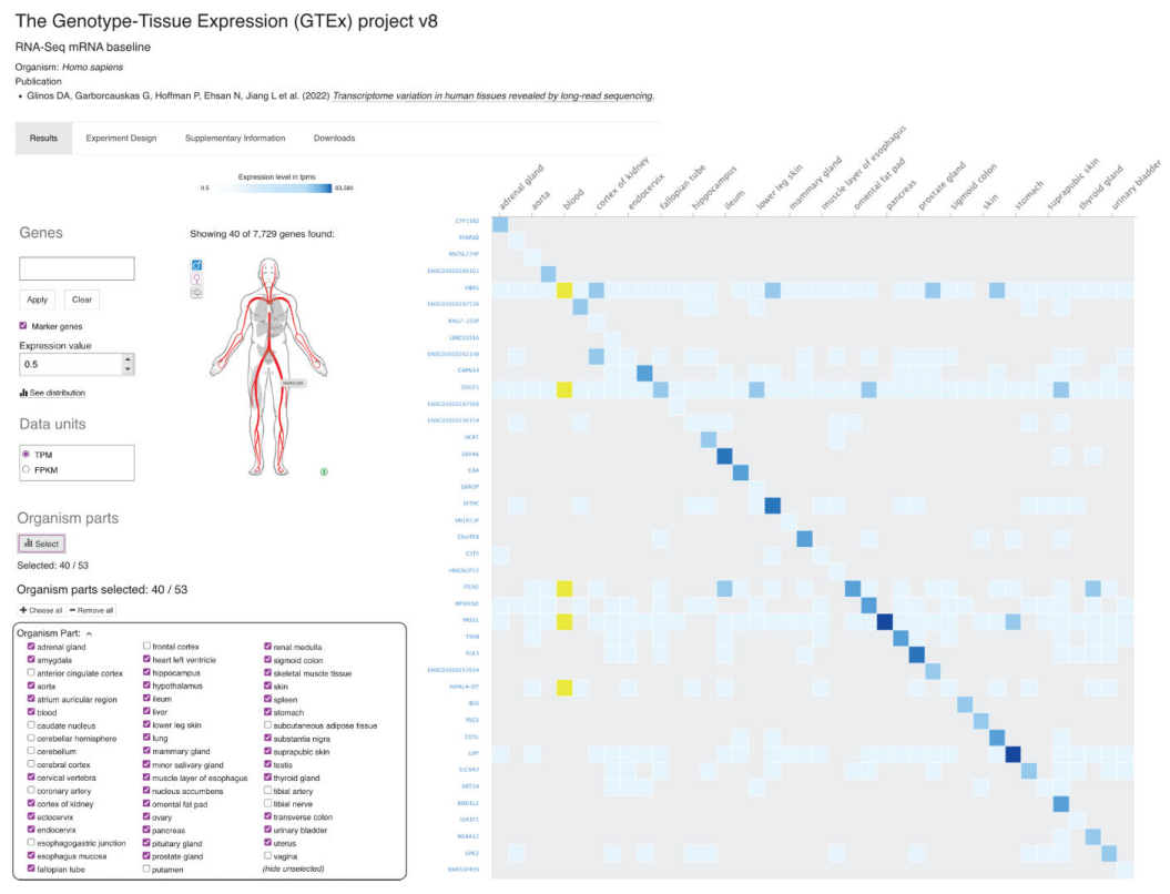 资源已整合4562项研究、67个物种,涵盖>16万组学实验,新增123个蛋白质组数据集与黏菌首个原生生物条目;GTEx v8人源转录组、Tabula Sapiens等81项HCA单细胞图谱实现外部AnnData直引。平台新增Marker Gene Finder模块,可一键筛选组织特异基因;单细胞流程全面迁移至Nextflow,提升可重复性与容器化部署。数据通过可嵌入热图小部件同步至Ensembl、UniProt、Europe PMC及FlyBase、Gramene等模式生物库,并支持Open Targets药物靶点评估与欧洲诊断转录组文库(EDTL)感染病分类。
