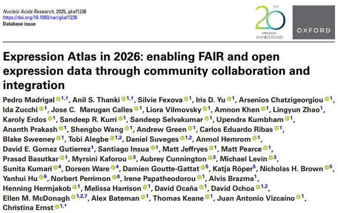 6. (NUCLEIC ACIDS RES, IF:16.6) Expression Atlas 在 2026 年:通过社区协作和整合实现 FAIR 和开放的表达数据