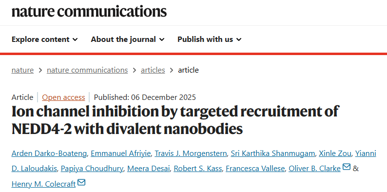 7. (NAT COMMUN, IF:14.7)通过靶向招募 NEDD4-2 使用双价纳米抗体抑制离子通道