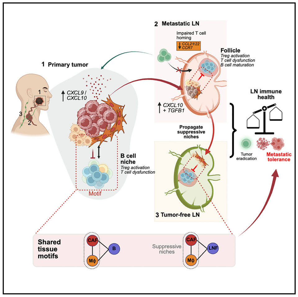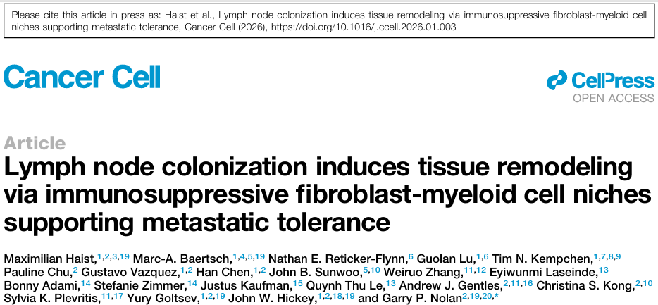 1. (CANCER CELL,IF:48.8) 淋巴结定植通过免疫抑制性成纤维细胞-髓系细胞生态位诱导转移耐受的组织重塑