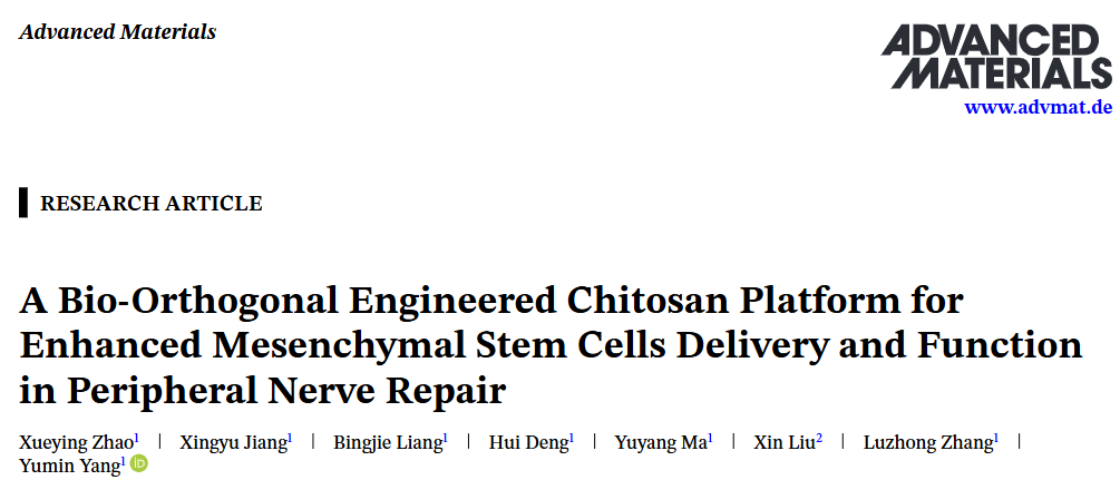 3. (ADV MATER,IF:27.4) 用于增强间充质干细胞递送和功能的生物正交工程壳聚糖平台在外周神经修复中的应用