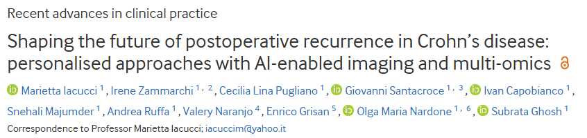 5. (Gut,IF:23.0) 塑造克罗恩病术后复发的未来:结合人工智能成像和多组学的个性化方法