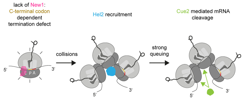 本研究发表于2026年1月22日,由美因茨约翰内斯·古腾堡大学药学和生物医学科学研究所等机构完成。研究聚焦酵母延伸因子同源物New1在mRNA稳定性中的作用,发现New1通过保护mRNA免受无进展衰变(NGD)的影响,维持了mRNA的稳定性。研究表明,缺乏New1时,特定的mRNA在翻译过程中会发生“碰撞”现象,这会触发NGD途径导致mRNA降解。
