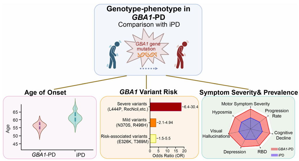 图. GBA1相关帕金森病的独特临床表型