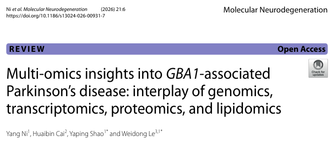 7. (MOL NEURODEGENER,IF:14.9) GBA1相关帕金森病的多组学见解:基因组学、转录组学、蛋白质组学和脂质组学的相互作用