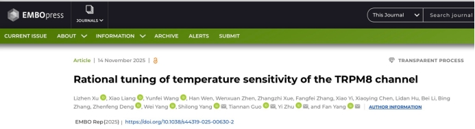 在冷激活过程中,研究者首次观察到TRPM8胞内区的MHR1-3结构域中一组关键氨基酸残基发生了包埋/暴露的动态构象变化,也为“水-蛋白相互作用推动温度感知”的机制提供了证据。研究团队随即对这些关键残基做了突变,使其对冷不再敏感,这也说明HRF-MS 找到的是温度感受的真正关键部件。研究链条因此完整建立: