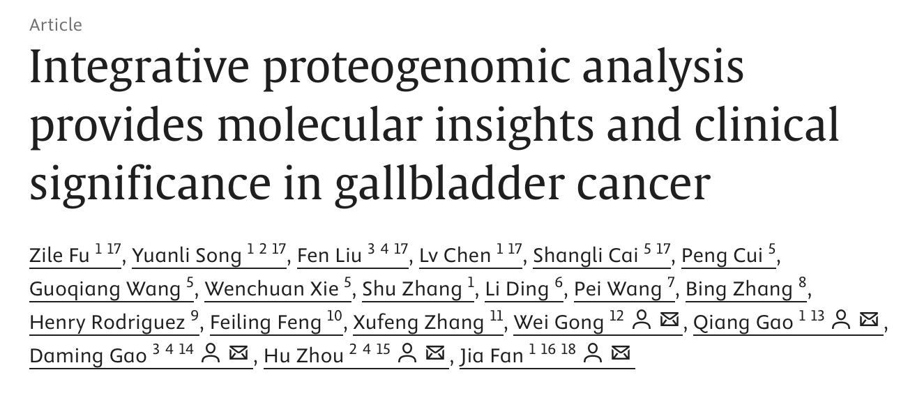 2026年1月8日,复旦大学附属中山医院樊嘉院士、高强教授团队,联合中国科学院上海药物研究所周虎研究员等,在 Cancer Cell 发表了目前全球规模最大的胆囊癌多组学研究,题目为:“Integrative proteogenomic analysis provides molecular insights and clinical significance in gallbladder cancer”,为破解这一顽疾提供了前所未有的深度视角。